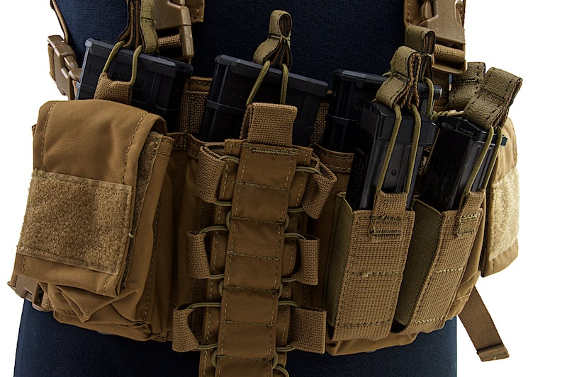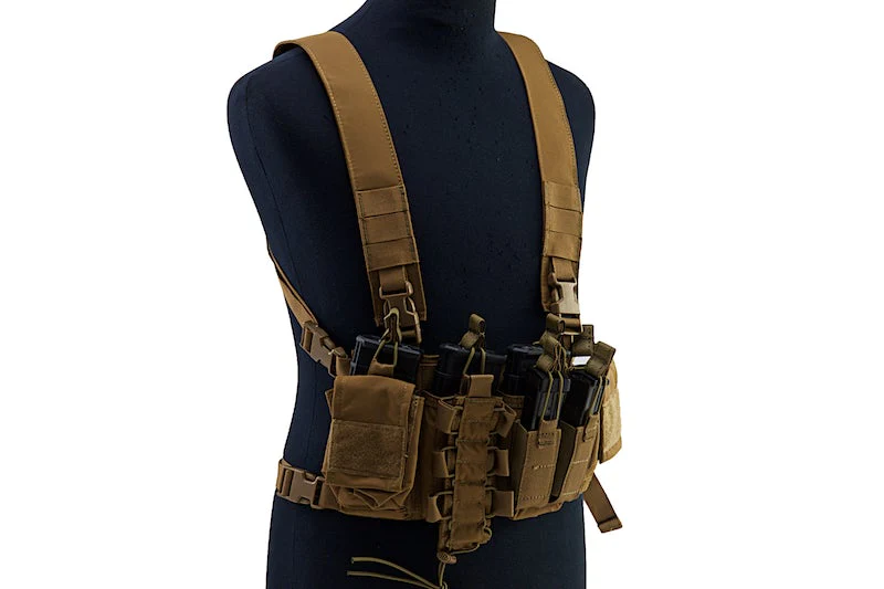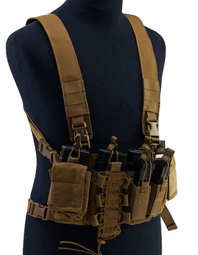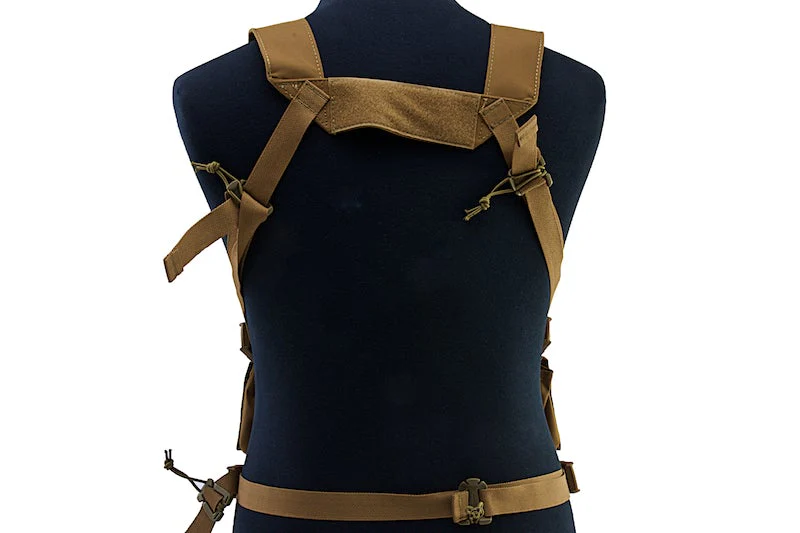 Un chaleco tipo chaleco táctico muy ligero, sencillo y de diseño clásico Chest rig. Gran equipo para acciones rápidas que no requieran mucho equipamiento, también ideal para cualquier aviador que valore la movilidad así como el bajo peso del equipo