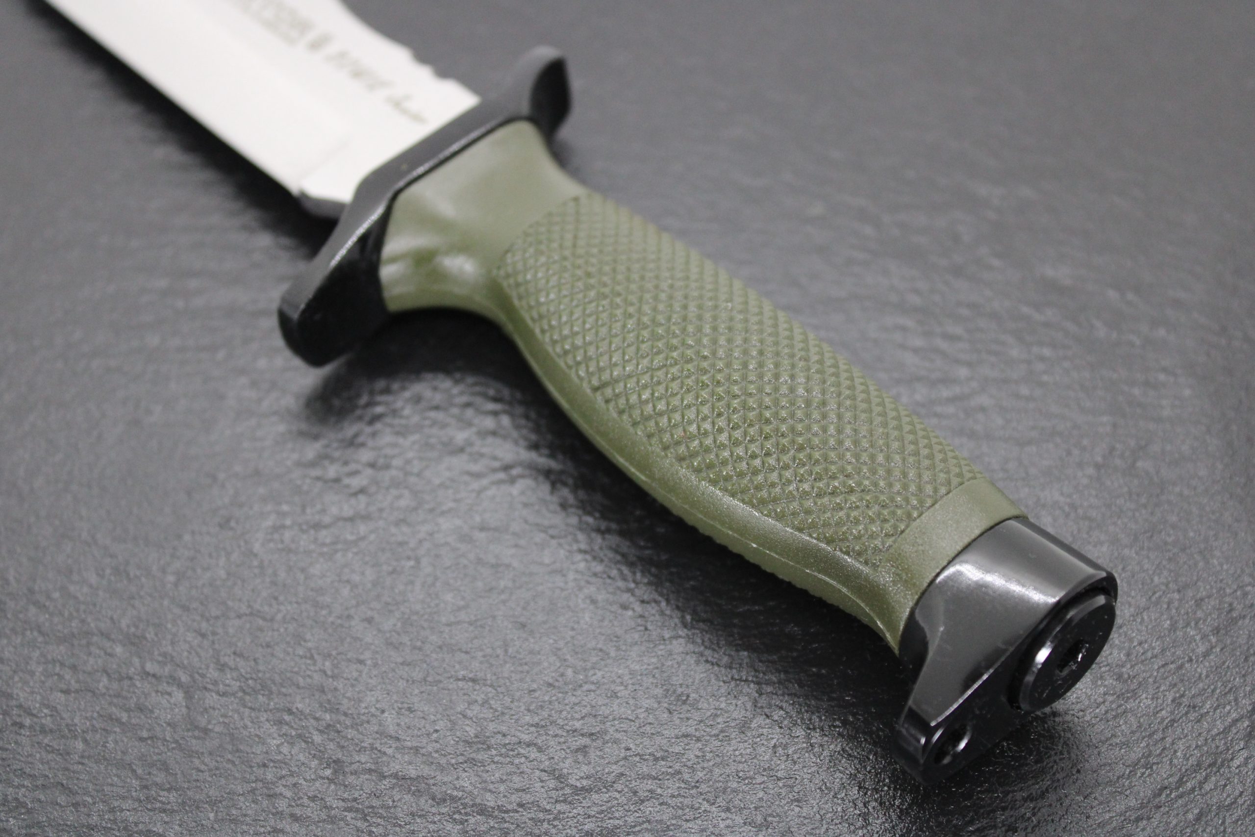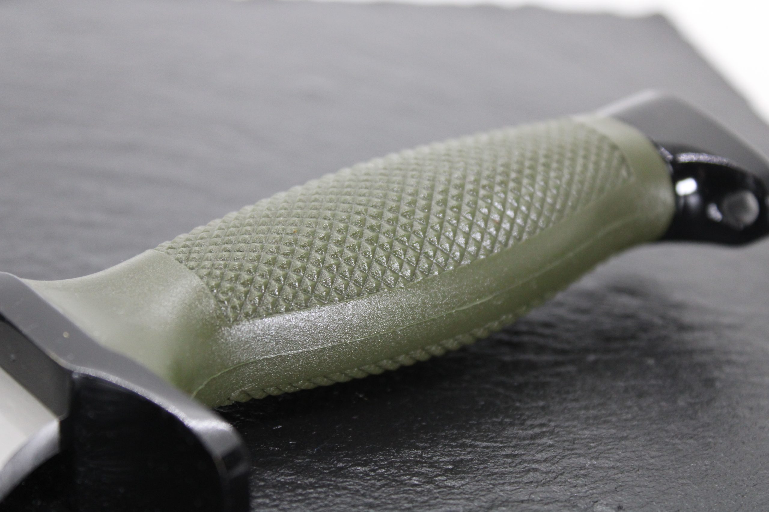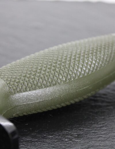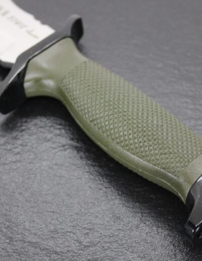 Mango: Poliamida verde antideslizante, defensa y pomo color negro